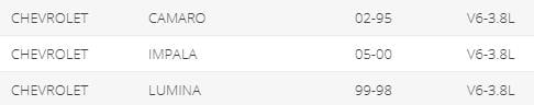 Chevrolet | Impala | 2000 - 2005 |